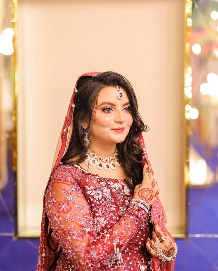 Title: Anarkali – Pomegranate Red Embroidered & Hand-Embellished Bridal Maxi (3- Piece Unstitched Set)